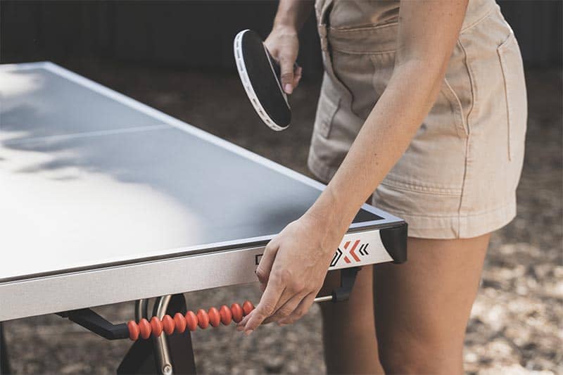 No todos los jardines están perfectamente nivelados, pero su mesa de ping-pong debe tener una superficie de juego plana. Con sus almohadillas giratorias ubicadas en la parte inferior de los pies, la 500X se adapta a cualquier tipo de piso. Configure su mesa donde desee sin comprometer la calidad de su juego. Césped, tierra, grava, arena: sea cual sea el terreno, ¡su mesa Cornilleau 500X sabe cómo hacer frente!